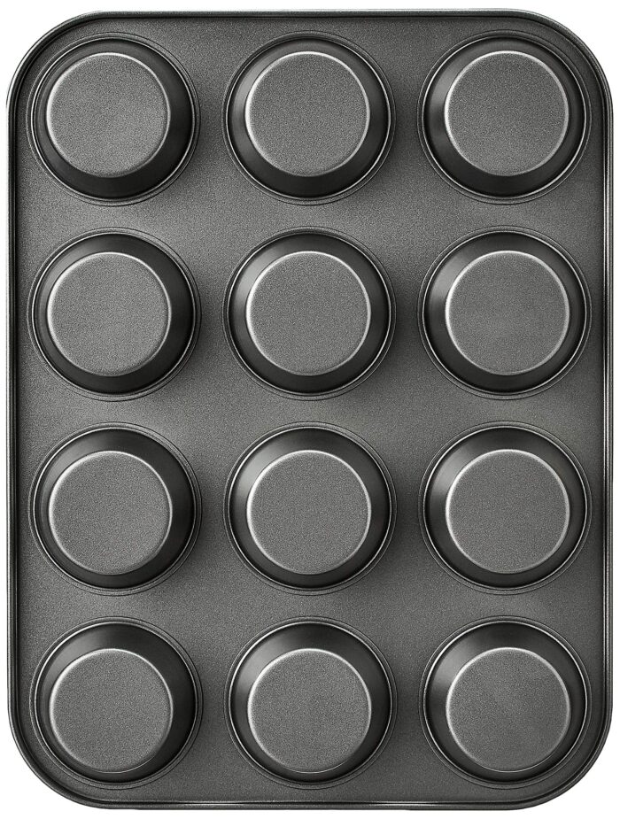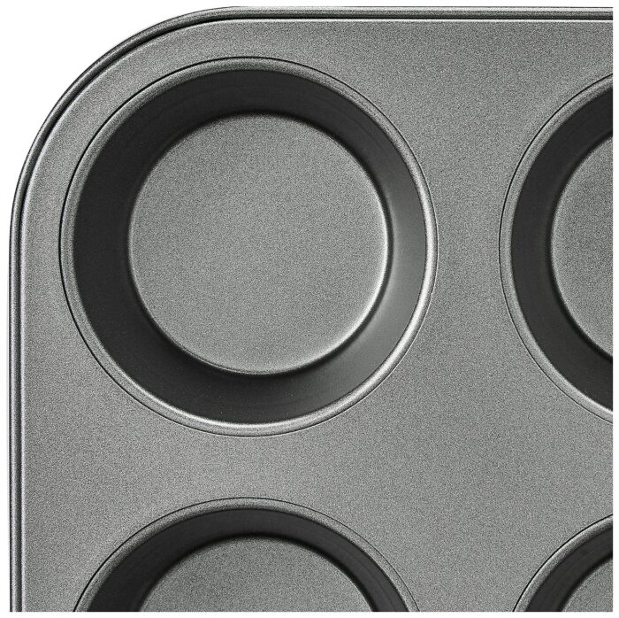 • 6-piece bakeware set includes a 9×5-inch loaf pan, 2 round 9-inch cake pans, a 12-cup muffin pan, a 13×9-inch roast pan, and a 13×9-inch baking sheet