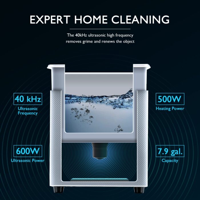 CREWORKS’ 600W ultrasonic cleaner is just the thing! Its 40kHz sound waves agitate the water in the half gallon basin to create cavitation: tons of tiny air bubbles whose miniscule implosions safely scour even delicate and intricate surfaces to clean them thoroughly and remove any contaminant, tarnish, or build-up. Combining this effect with gentle cleansers like soap or detergent and our ultrasonic washer’s own 500W of heating power provides even greater strength to get at the most caked-in grime. The control panel provides timed cleaning up to 30 minutes (not that you’ll need so long) and heated cleaning at temperatures between 68 and 176 F. Perfect for home, class, or laboratory use, this ultrasonic cleaning machine cleans tools, necklaces, earrings, piercings, glasses, watches, retainers, baby toys, and more in minutes at the push of a button. Enjoy years of helpful use thanks to stainless steel construction inside and out (including the inner basket), built-in protection against electrical surges, and 4 non-skid rubber feet to grip any countertop. Best of all, our cavitation cleaner remains compact and easily portable thanks to the inset handles on either side.
