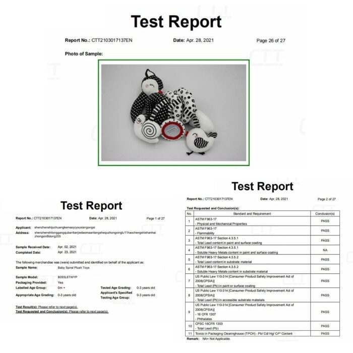- 【Parent Assured & 100% Safety】Newborn stroller toys have passed CPSIA & ASTM F963 certification in the US and EN71 & CE certification in the EU. 100% safe material. Non-toxic, BPA-free. The high contrast baby toys is filled with resilient PP cotton, which is suitable for baby’ s hand feeling. It is wrapped with a newly upgraded crystal fluffy fabric, which is close to the baby’ s skin. Safe in mouth & Safe for teething babies