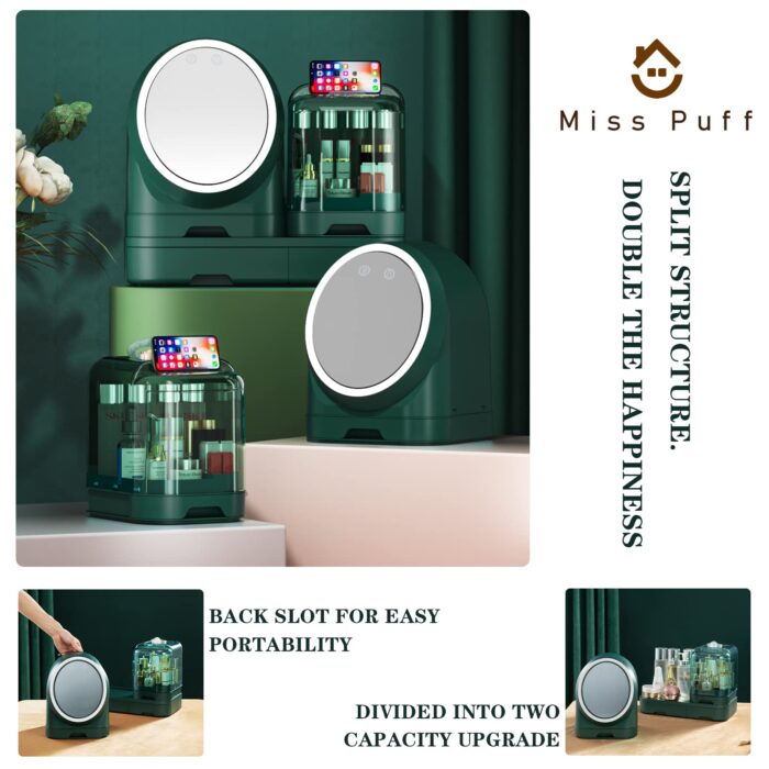 Home Makeup Products Miss Puff Makeup Organizer with LED Mirror and Fan