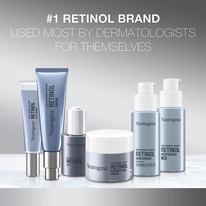 Help hydrate your skin while improving the look of fine lines and wrinkles with Neutrogena Rapid Wrinkle Repair Retinol Anti-Wrinkle Night Cream with Hyaluronic Acid. Rapid Wrinkle Repair night cream delivers our uniquely stabilized retinol deep within skin’s surface to quickly fight fine lines and wrinkles and delivers clinically-proven results. Face and neck cream instantly hydrates for smoother skin, and smooths the look of fine lines in one week and fades the look of wrinkles in just four weeks. The anti-age face cream formula contains retinol, a powerful, dermatologist-proven form of vitamin A, to fight fine lines, dullness, wrinkles and dark spots. Night cream also contains hyaluronic acid to add plumping moisture to help hydrate and rejuvenate the look of skin. This retinol moisturizer is suitable for daily use and is formulated without parabens, mineral oil, and dyes and comes from the #1 retinol brand used most by dermatologists.