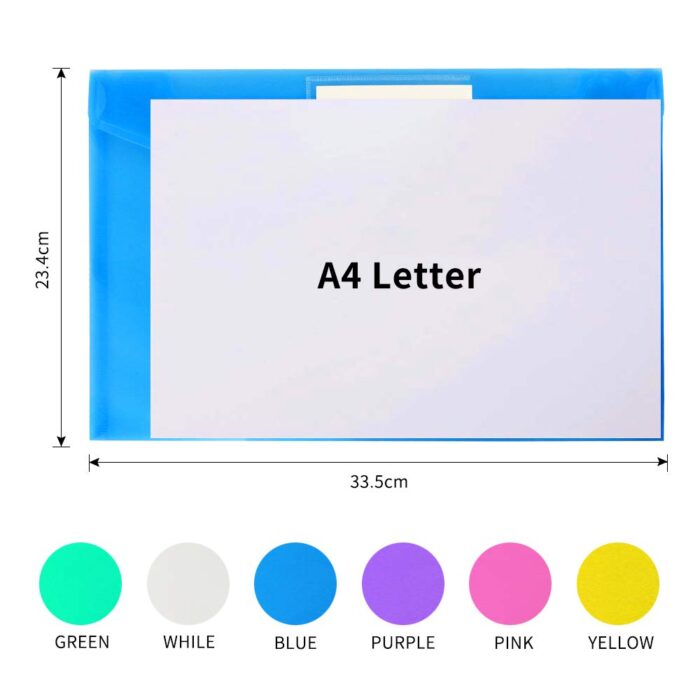 Waterproof PVC File Bags 5 Colors Envelopes Use for Business Document Organizer and Office Stationery Storage.