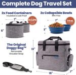 Have you been stuffing multiple plastic bags with food, toys and gear, only to have them break or those curious noses find their way into the food? The Doggy Bag makes travel simple, keeping all of your dog’s stuff in one bag that’s easy to organize and keeps food safe and secure.