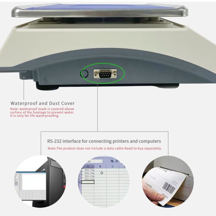 - *LAB QUALITY FOR INDUSTRY: Our counting scales have 2 specifications to choose from. Accuracy: 0.5g or 1g. Capacity: 15kg(33LB) or 30kg(66LB). The digital balance is built with a sensitive, lab-quality load cell to give you readings you can trust. RS232 port can connect computers and printers.
