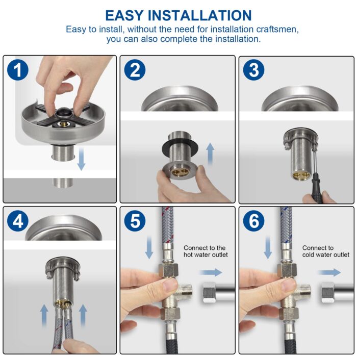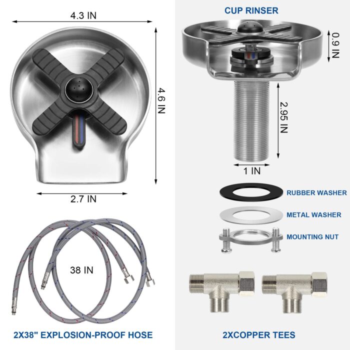 - 【EASY INSTALLATION】This sink glass washer set comes with all accessories you need for installation. Turn the cup upside down, gently press the bottom of the cup, and then you can enjoy automatic water spray cleaning.